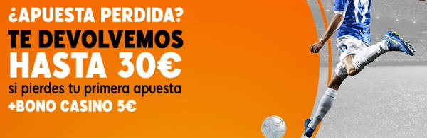 Apuesta perdida · Devolución en dinero real, sin requisitos de liberación y hasta un importe máximo de 30€ · Bono casino 5€