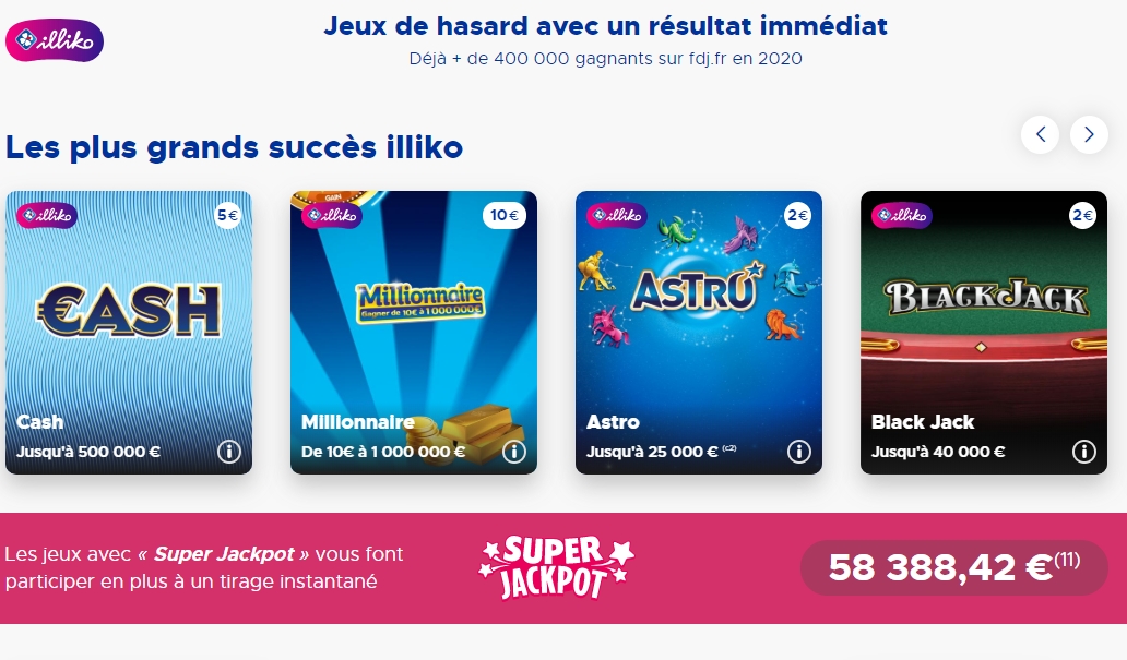 Les jeux illiko de la Français des Jeux sont des jeux de hazard avec un résultat immédiat. Comme les cartes de grattage, il permette de gagner instantanément des gains.